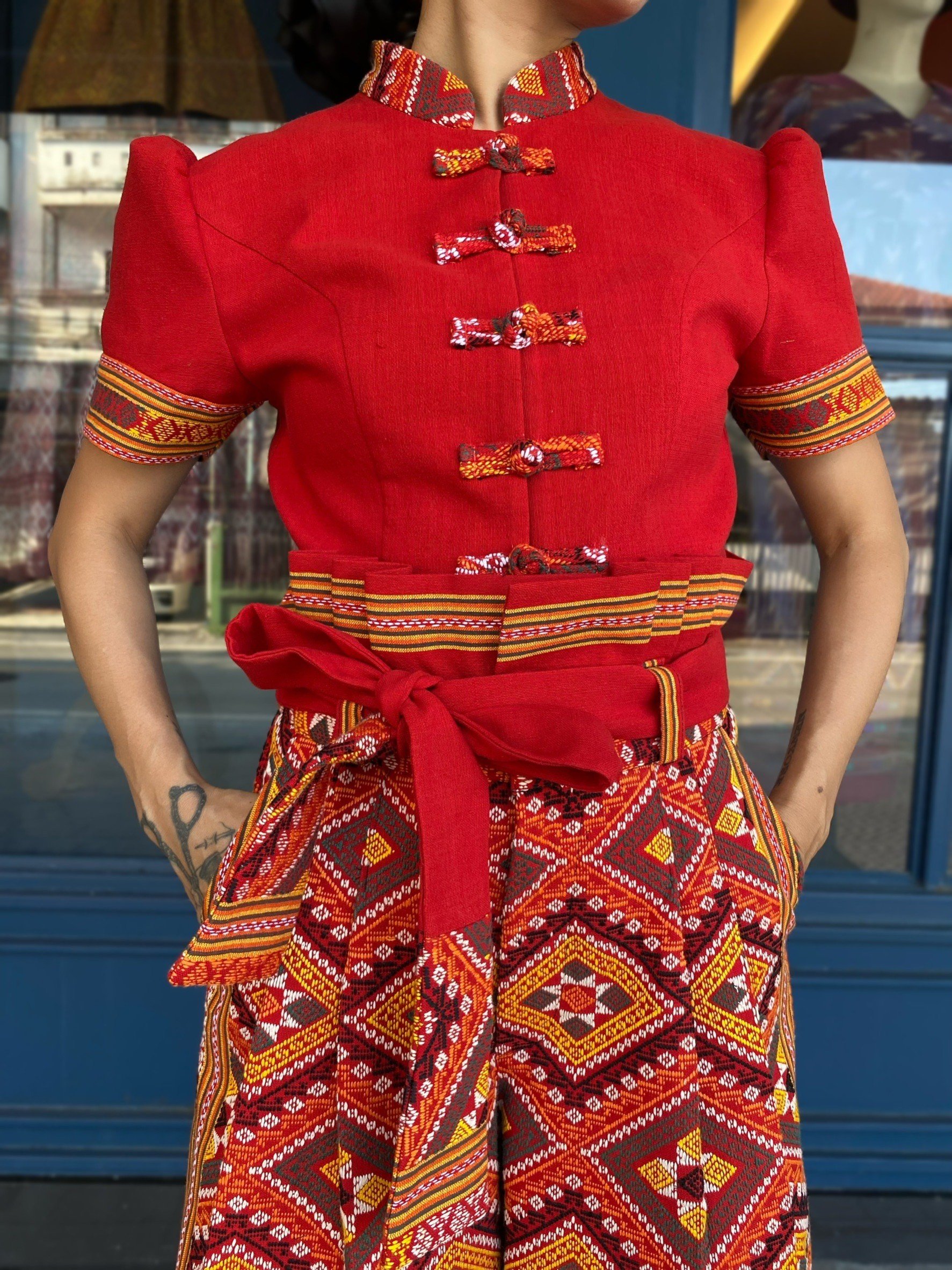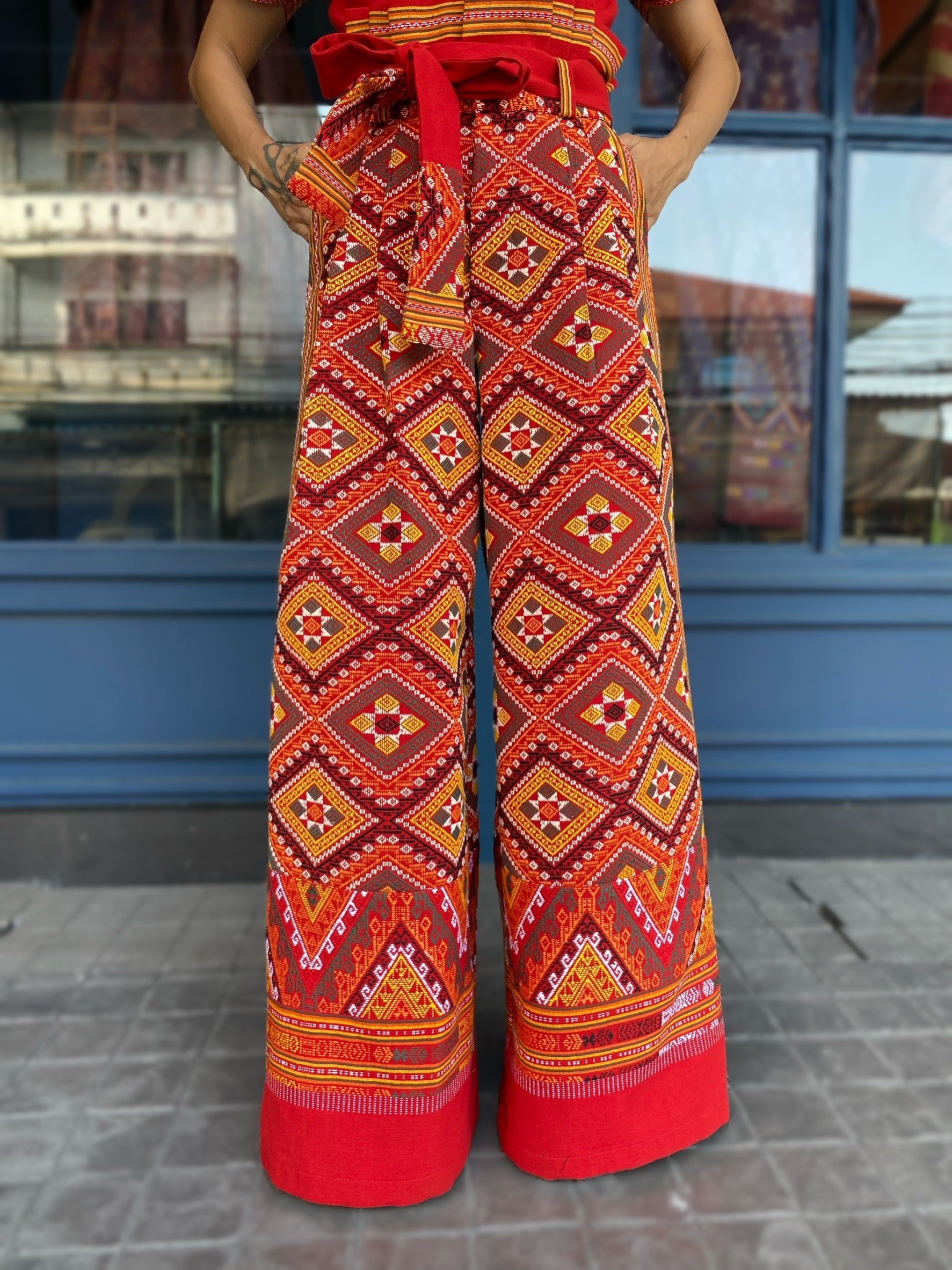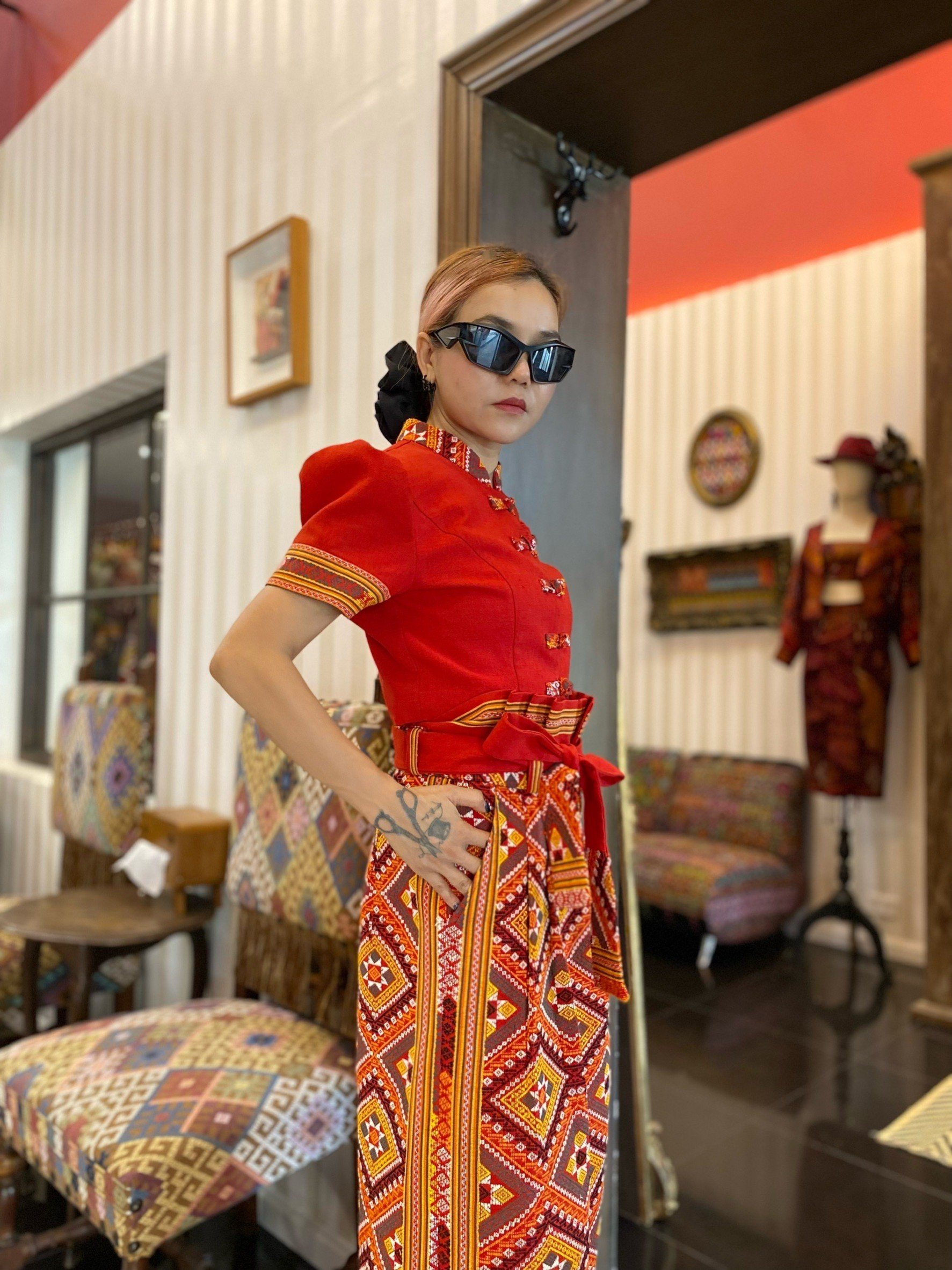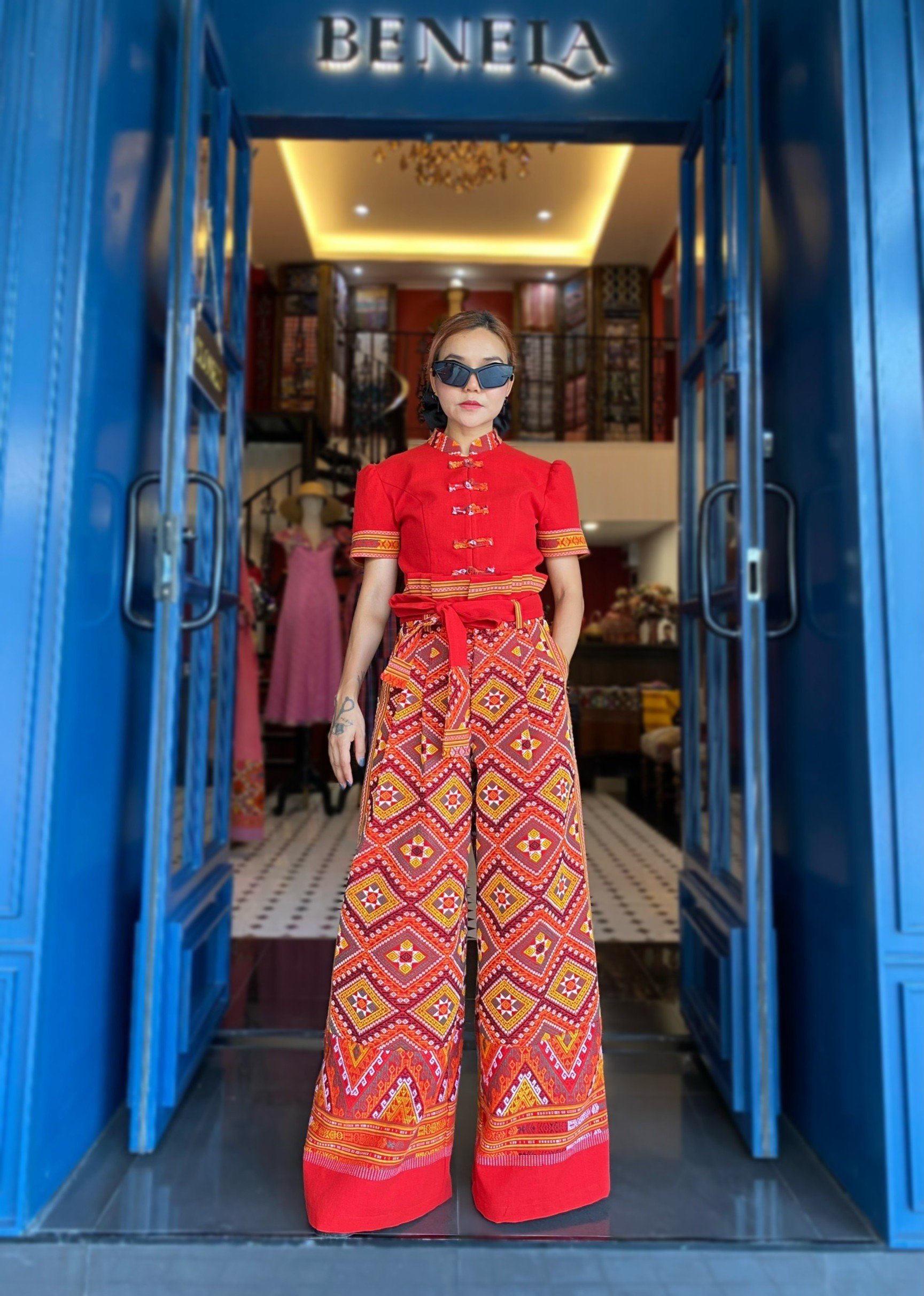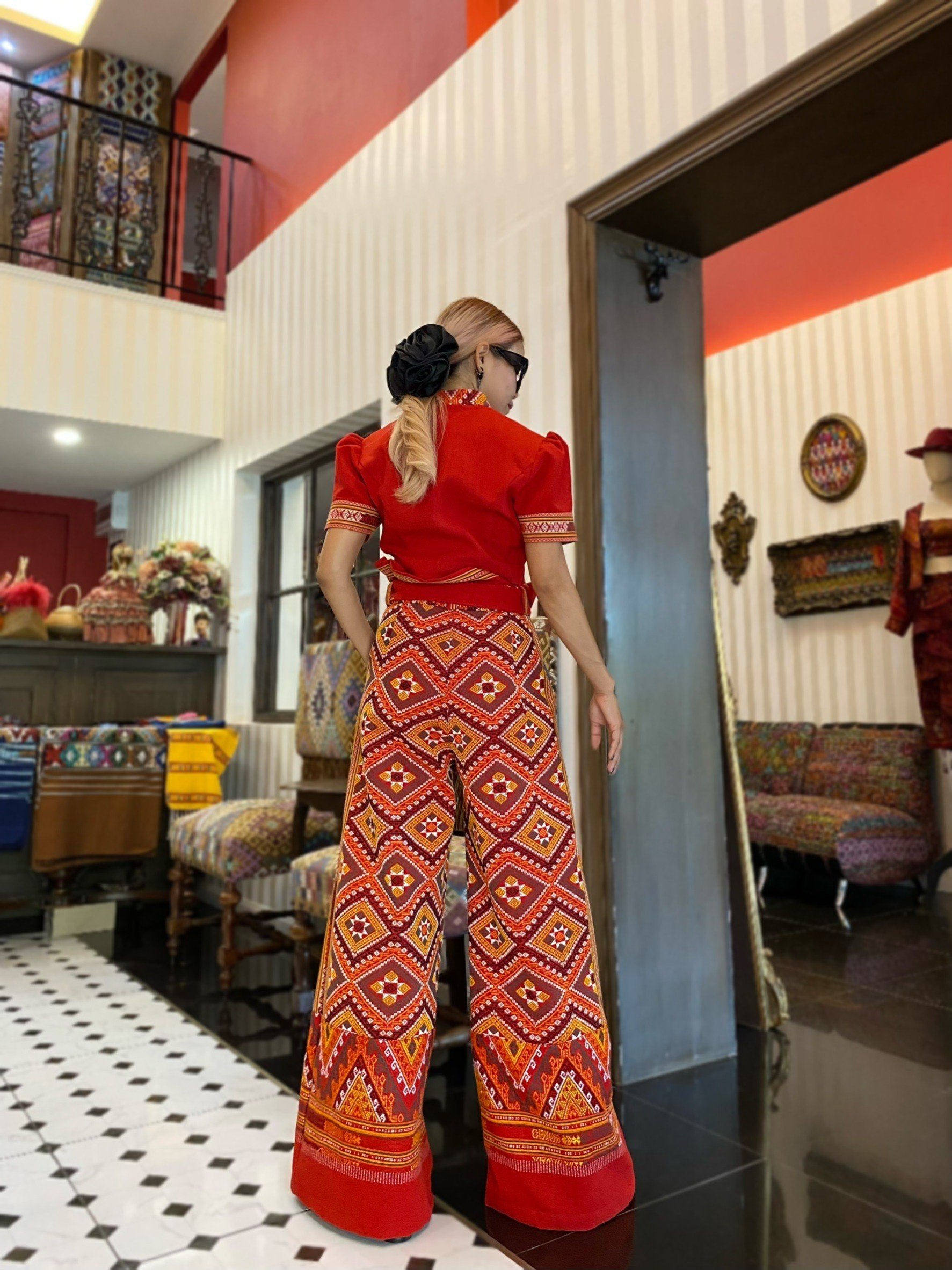 ชุด Set ผ้ามัดหมี่ลายศิลาล้อมเพชร ของดีจ.กำแพงเพชร ตัดเย็บร่วมกับผ้าไทลื้อ ของดี จ.น่าน