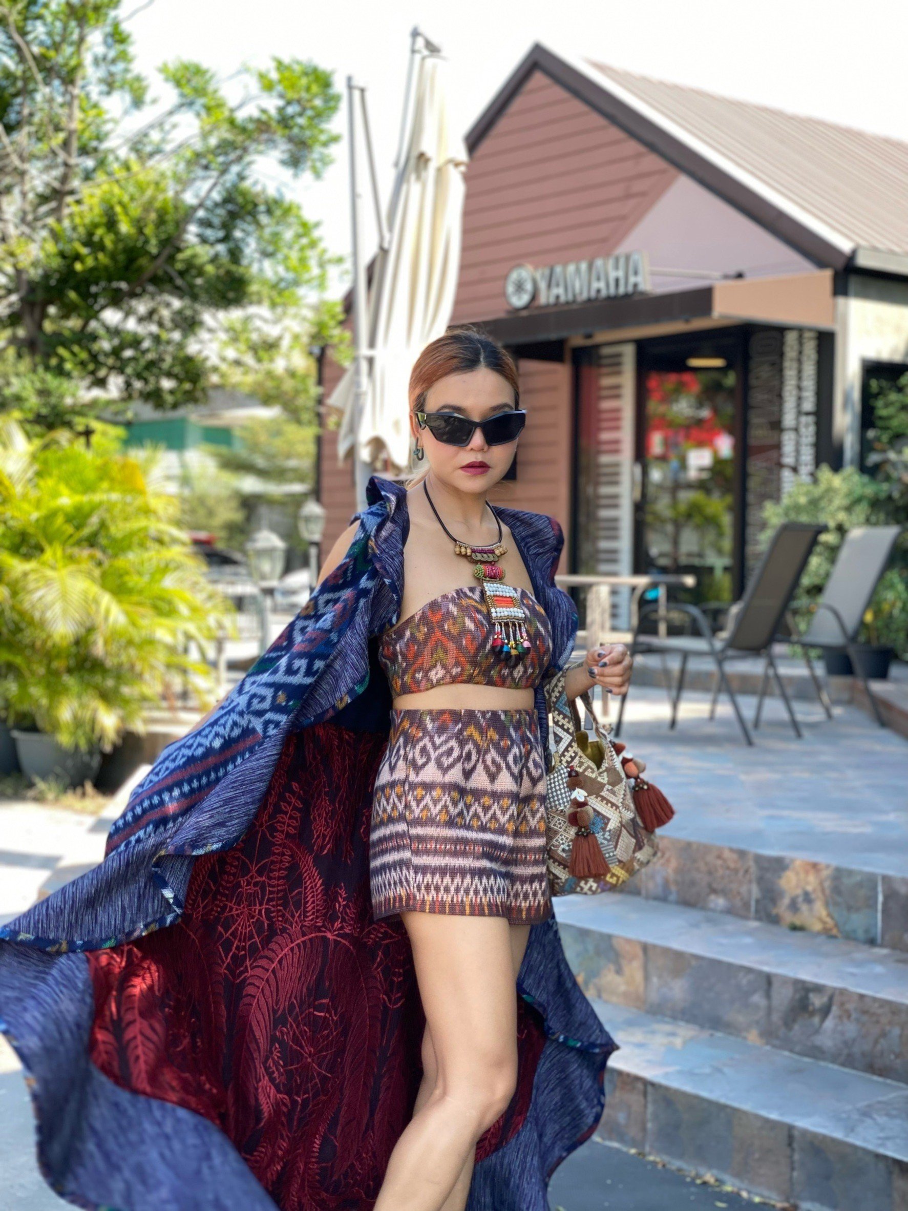 สื้อยืดคอจับจีบเฉียง มิกซ์แอนด์แมทช์ กับกางเกงจากผ้ามัดหมี่ ของดี จ.ลพบุรี