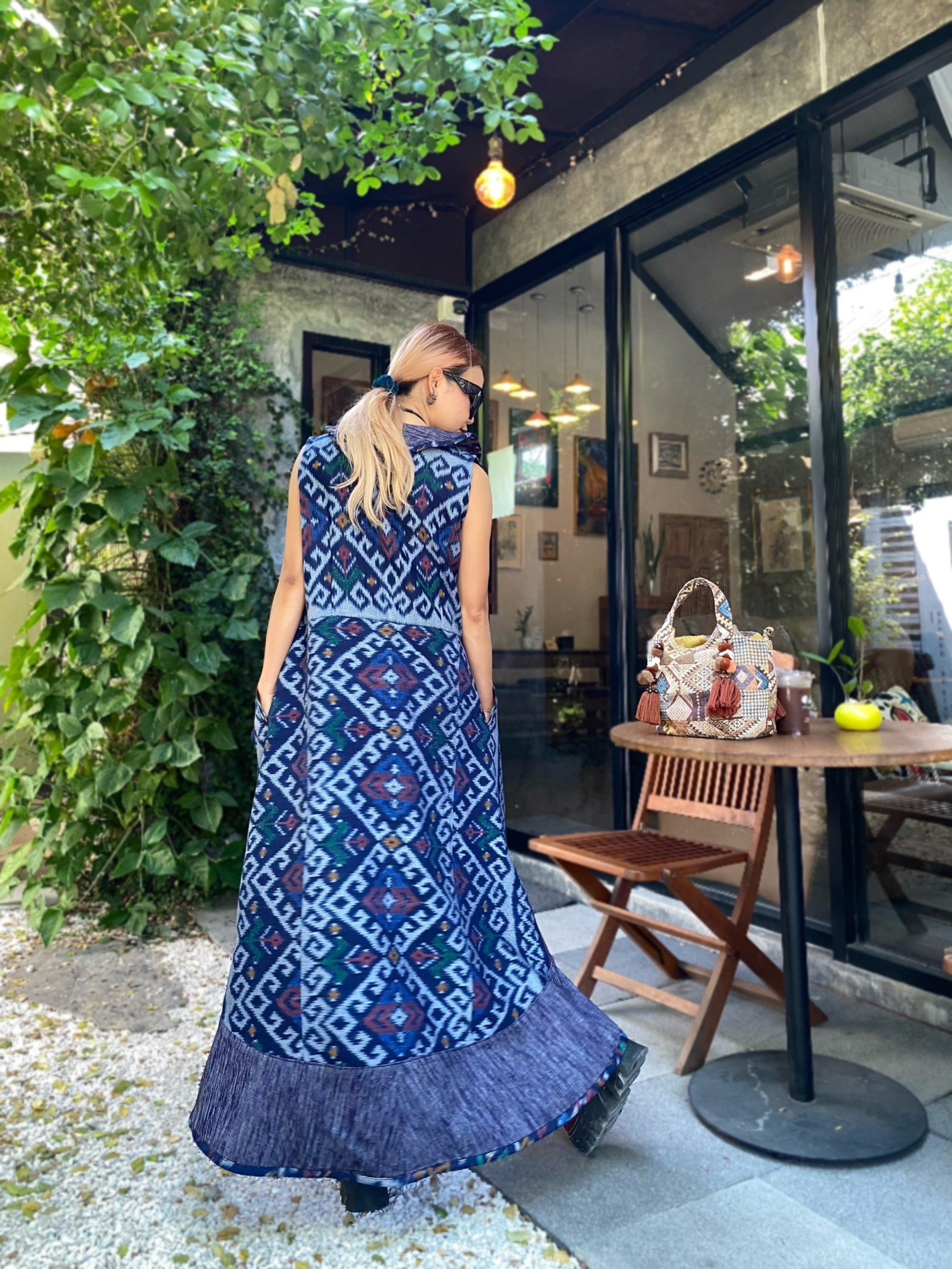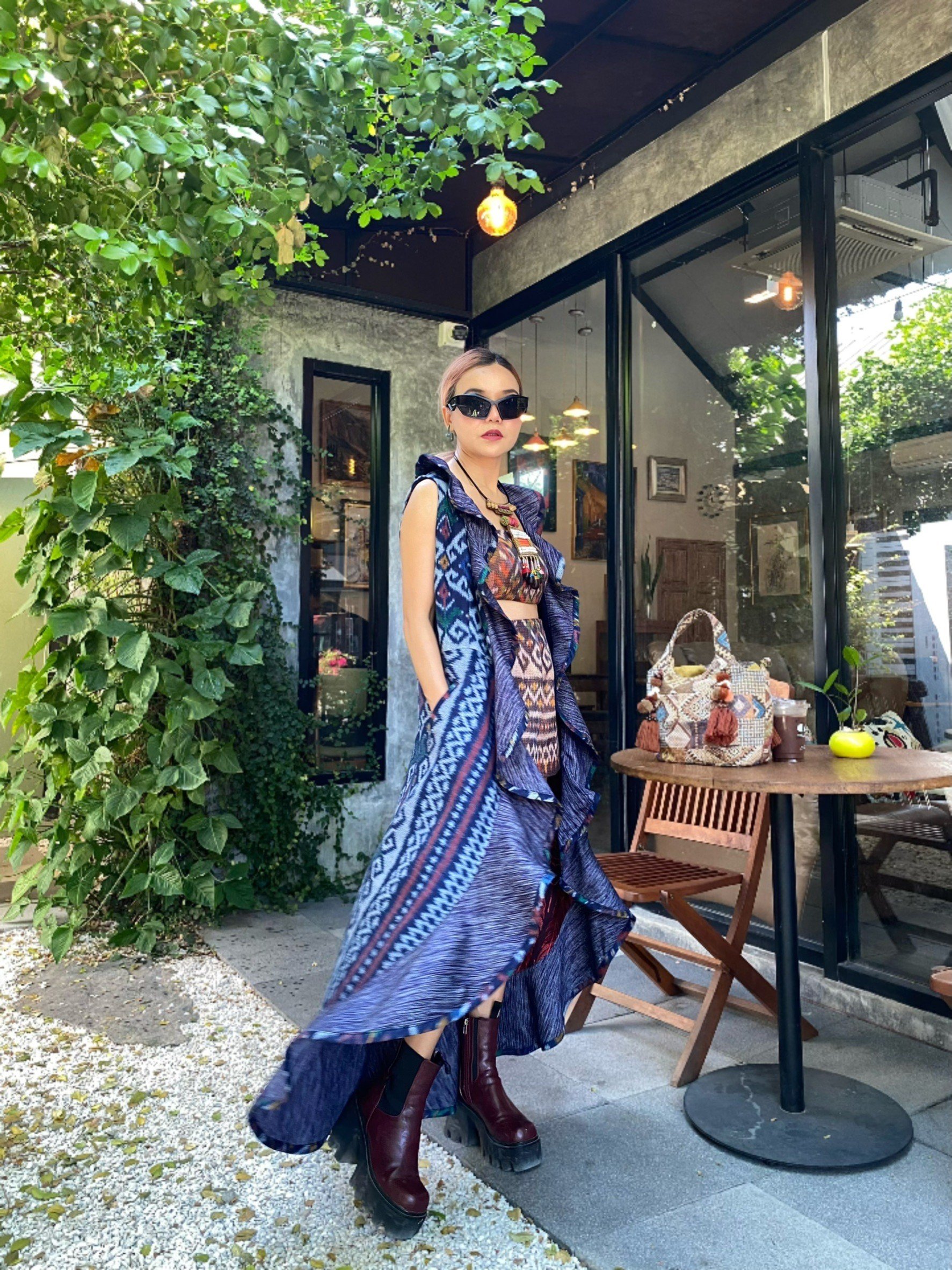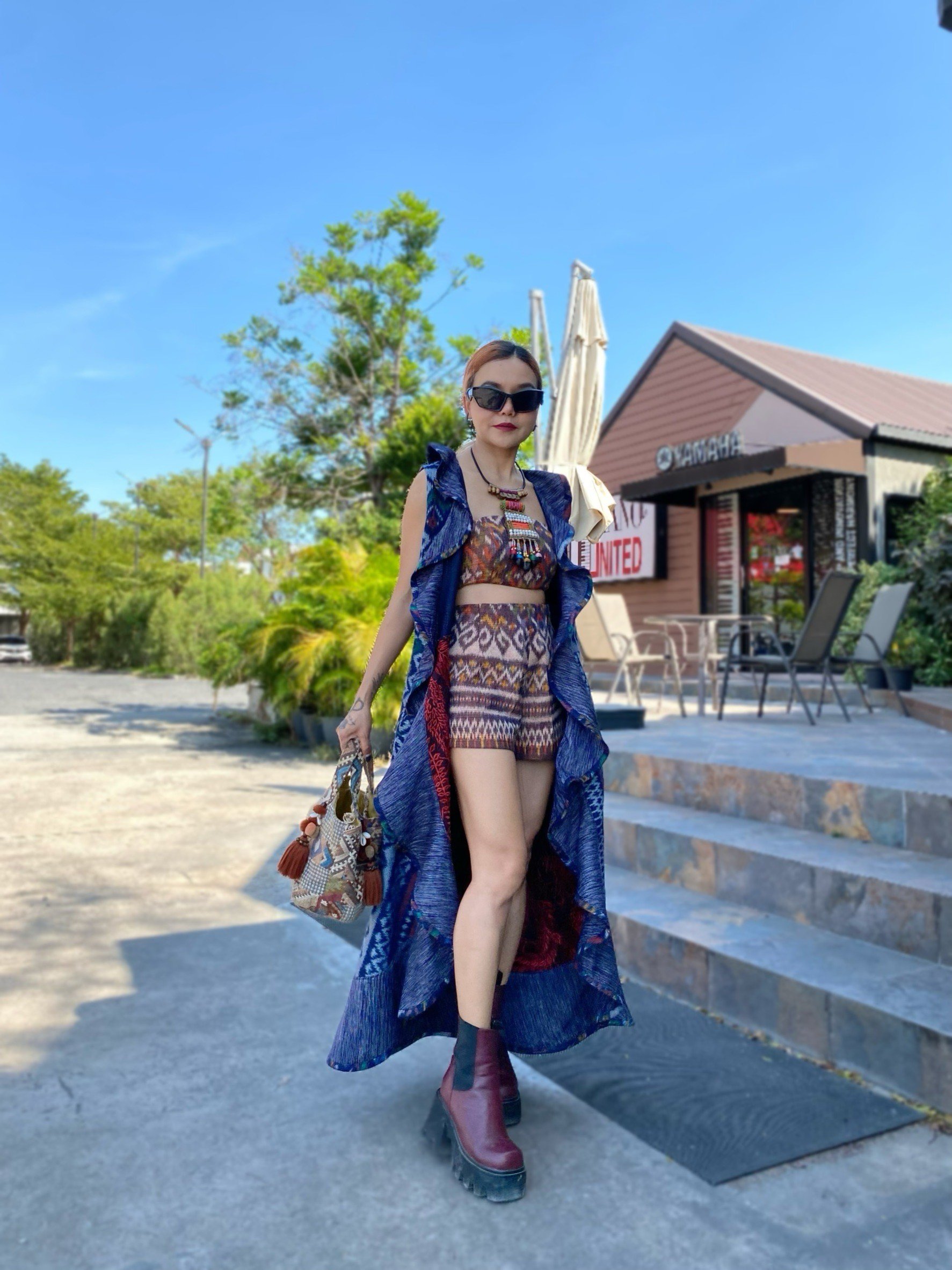 ชุด Set ผ้ามัดหมี่ลายศิลาล้อมเพชร ของดีจ.กำแพงเพชร ตัดเย็บร่วมกับผ้าไทลื้อ ของดี จ.น่าน