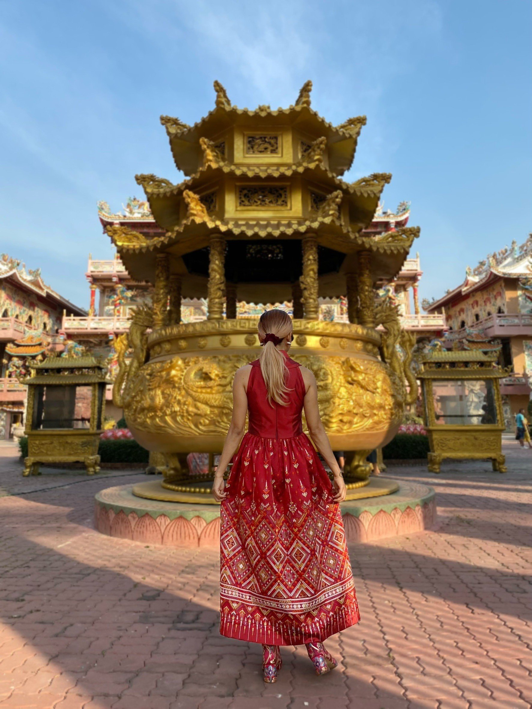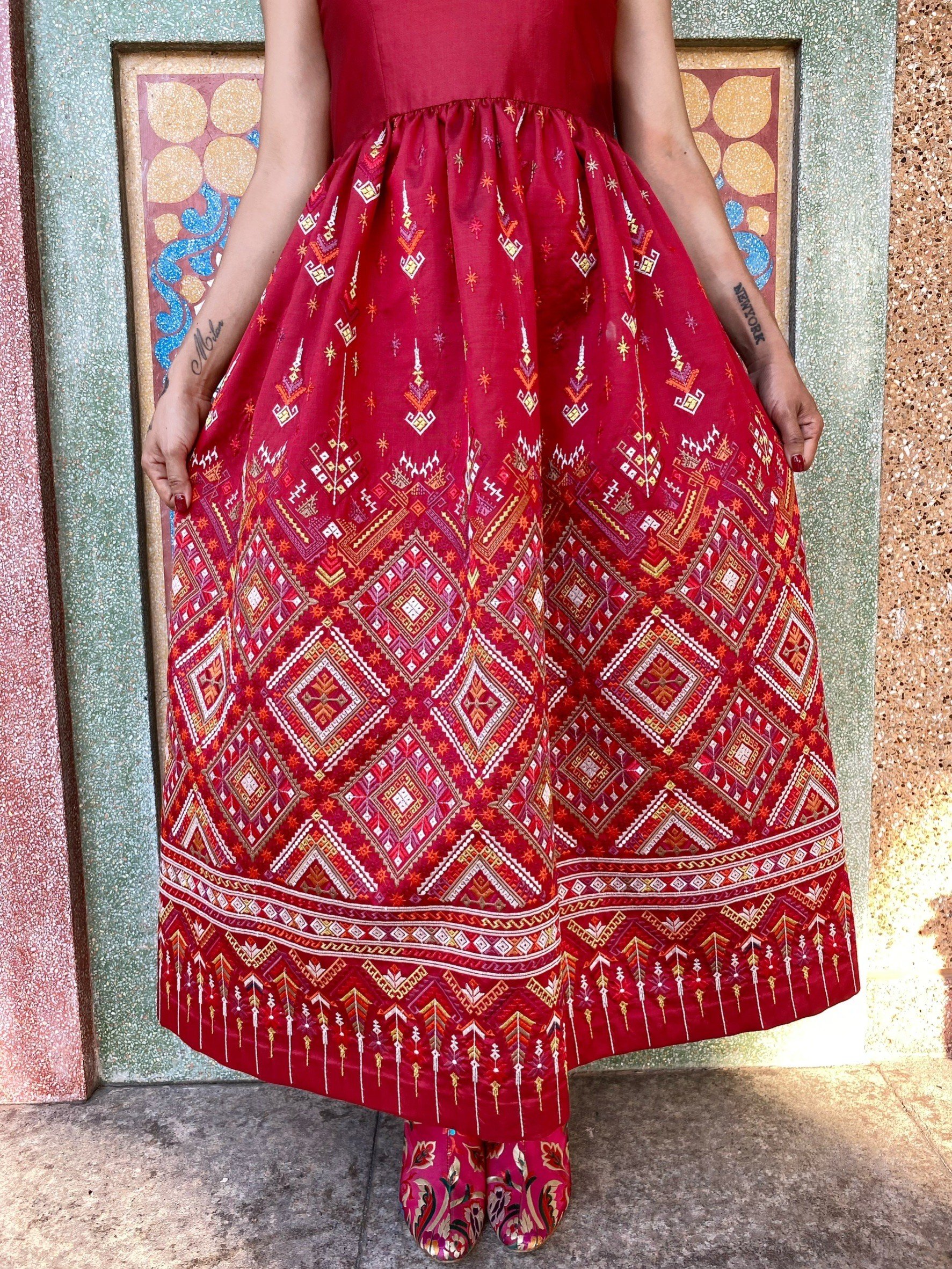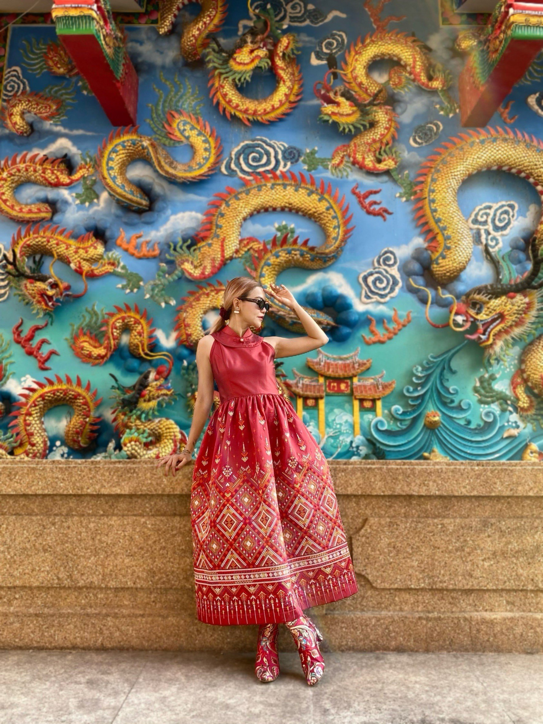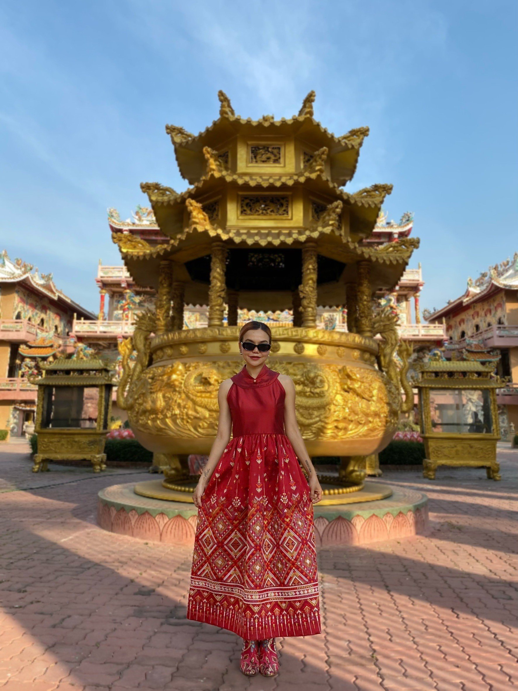 Maxi Dress จากผ้าขาวม้า ทอจากโรงทอจังหวัดราชบุรี