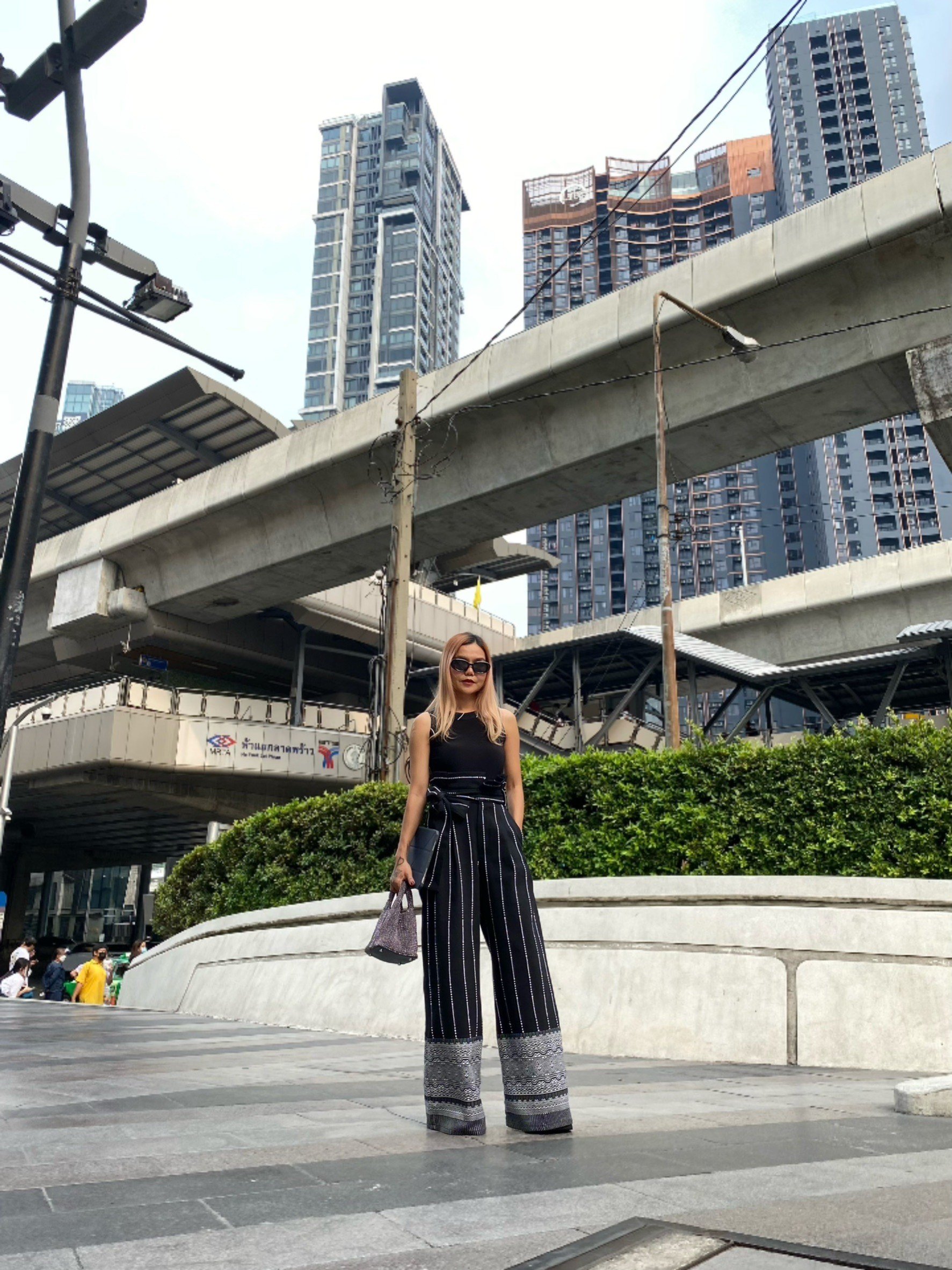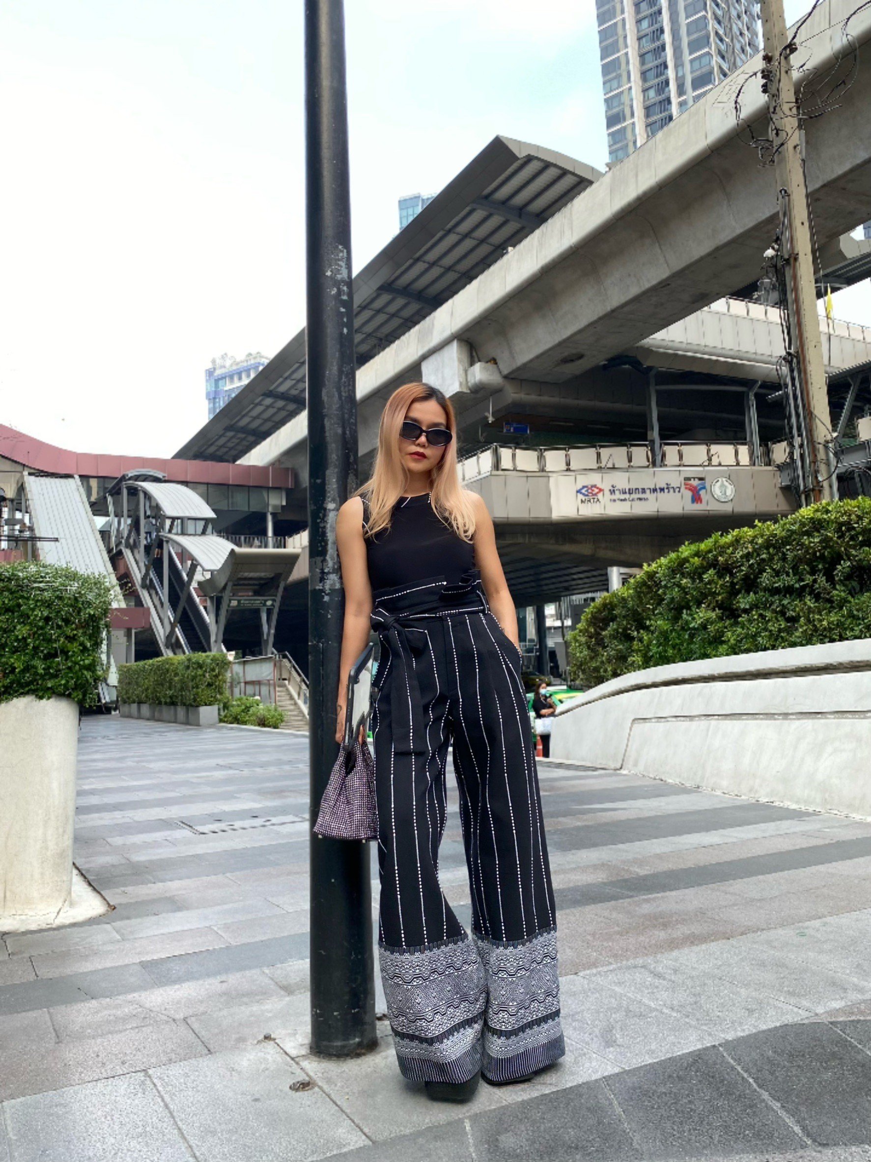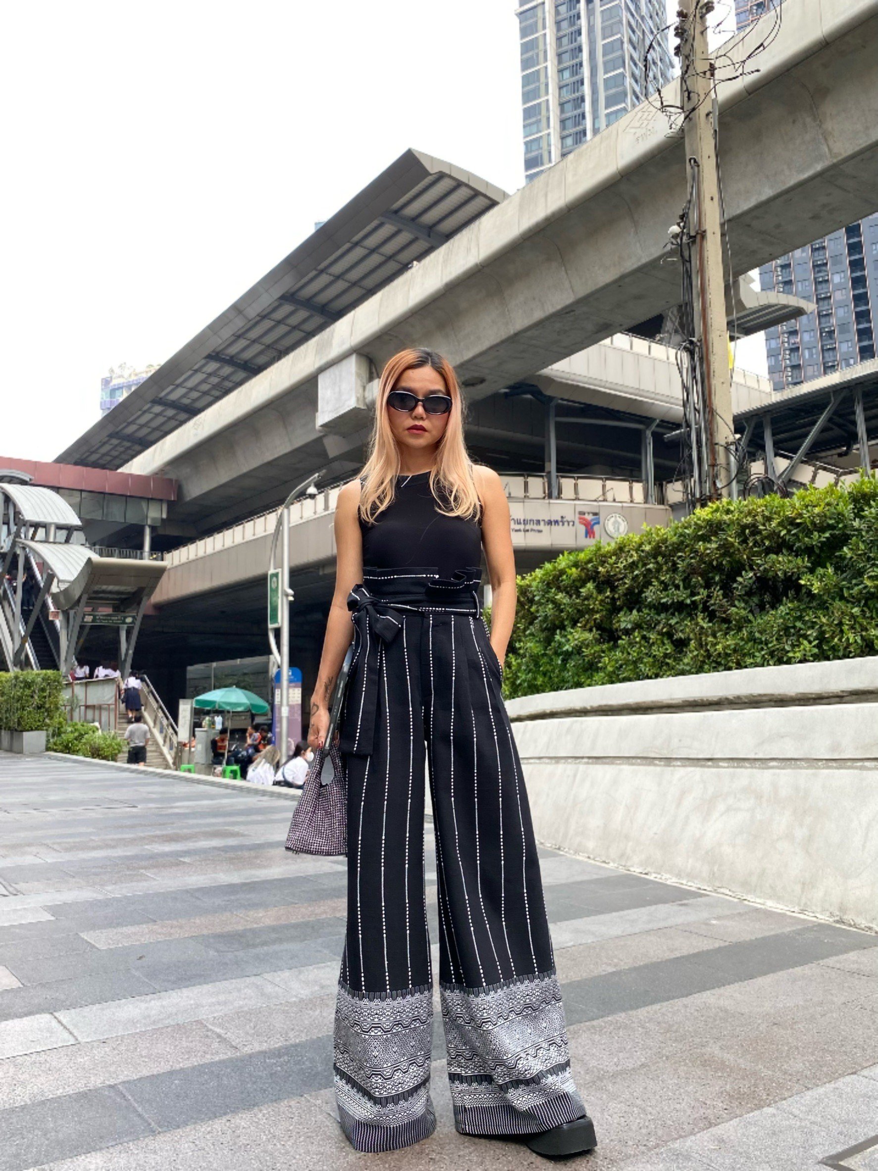 สื้อยืดคอจับจีบเฉียง มิกซ์แอนด์แมทช์ กับกางเกงจากผ้ามัดหมี่ ของดี จ.ลพบุรี