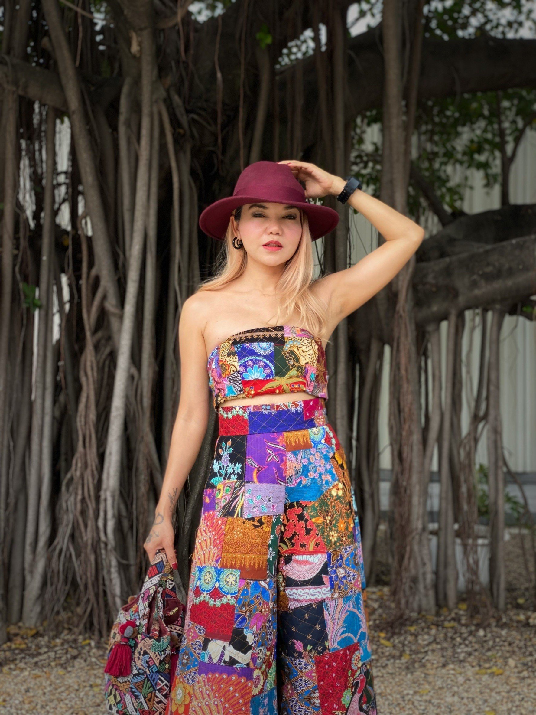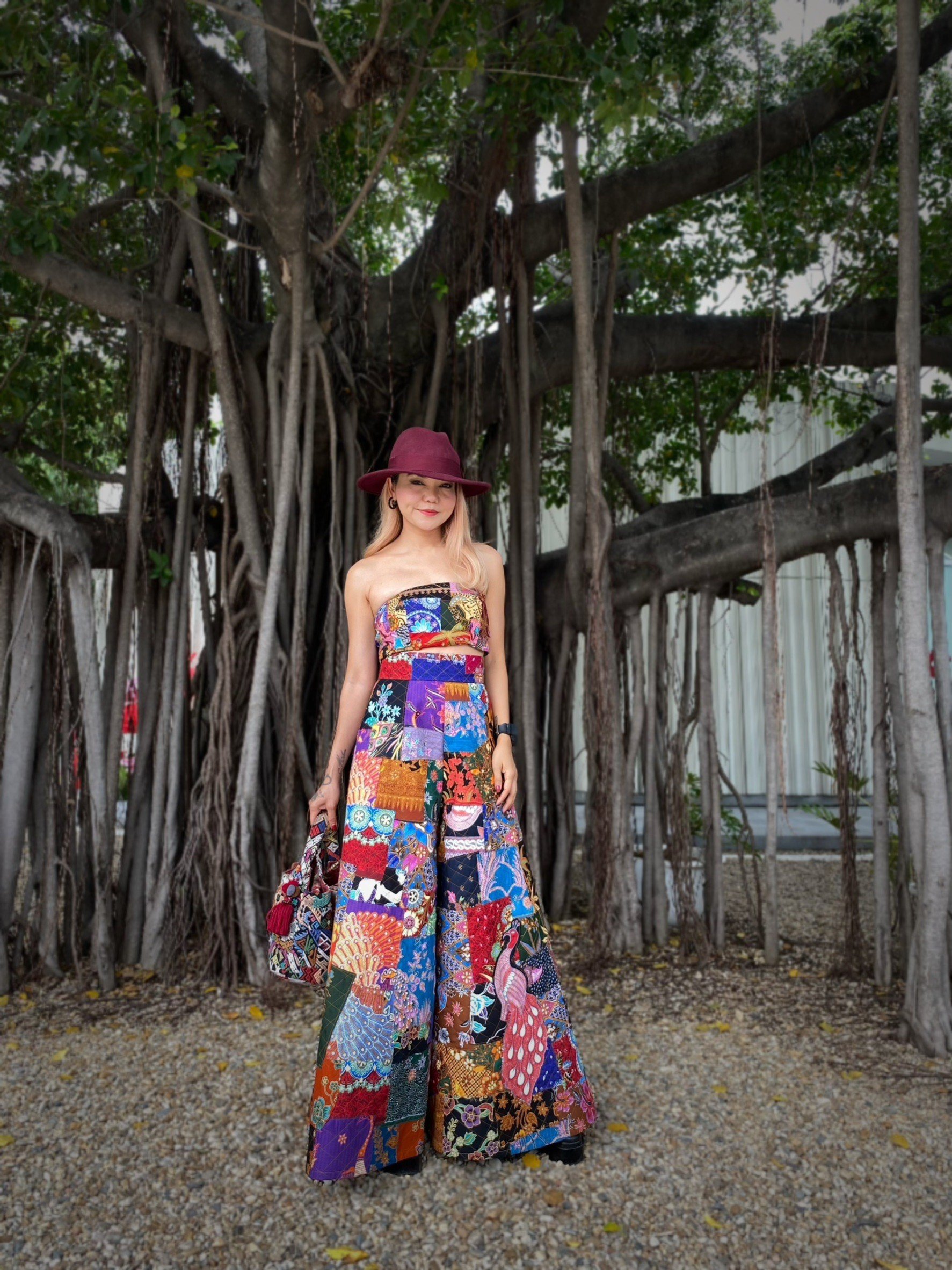 สื้อยืดคอจับจีบเฉียง มิกซ์แอนด์แมทช์ กับกางเกงจากผ้ามัดหมี่ ของดี จ.ลพบุรี