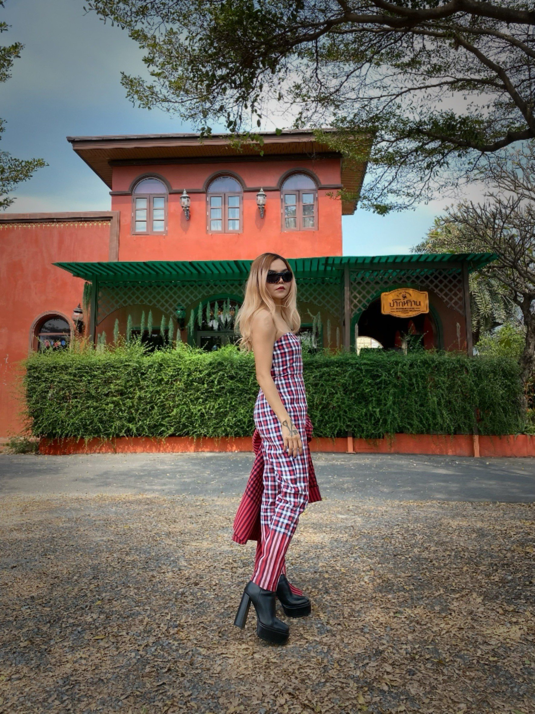 สื้อยืดคอจับจีบเฉียง มิกซ์แอนด์แมทช์ กับกางเกงจากผ้ามัดหมี่ ของดี จ.ลพบุรี