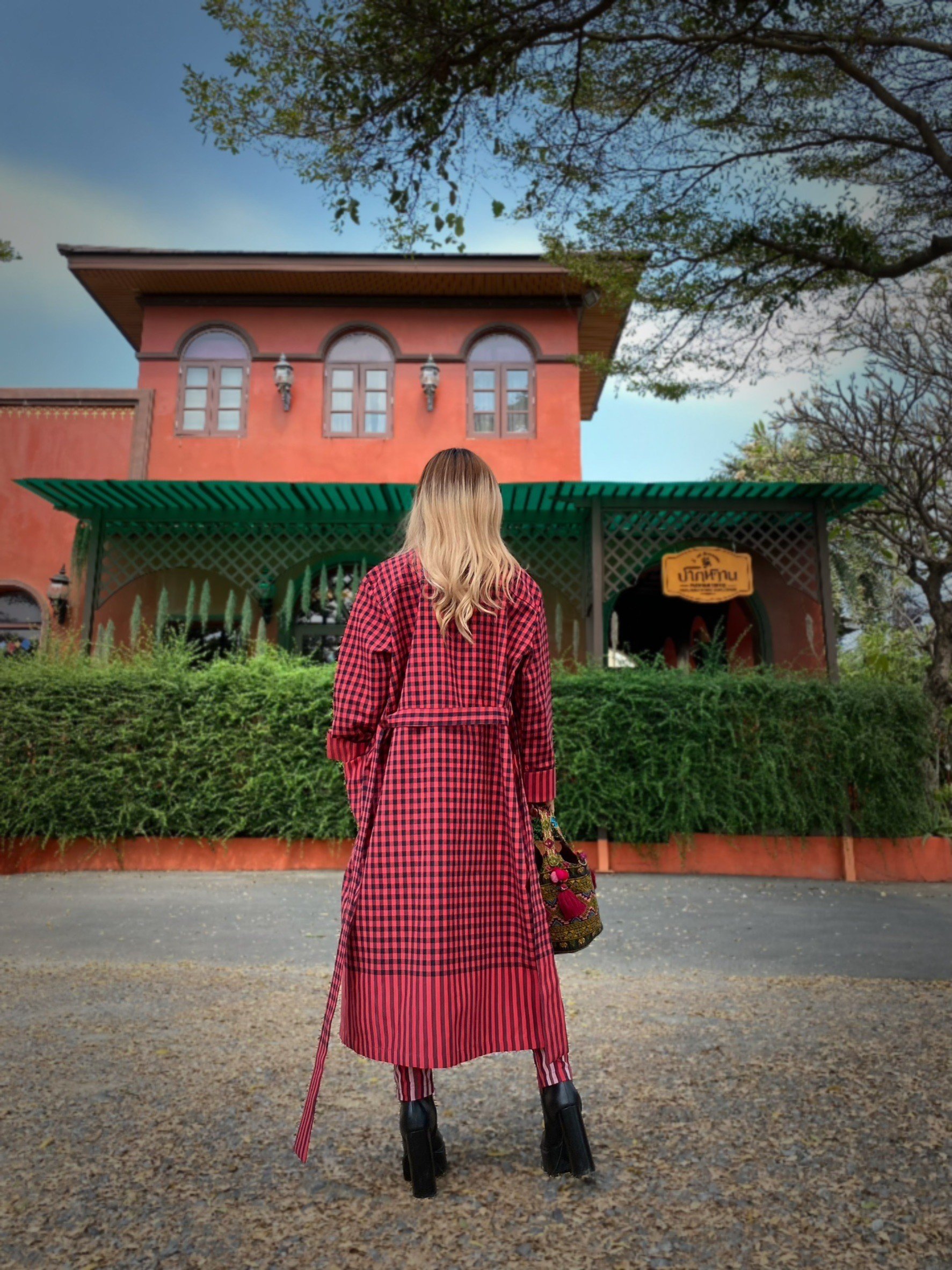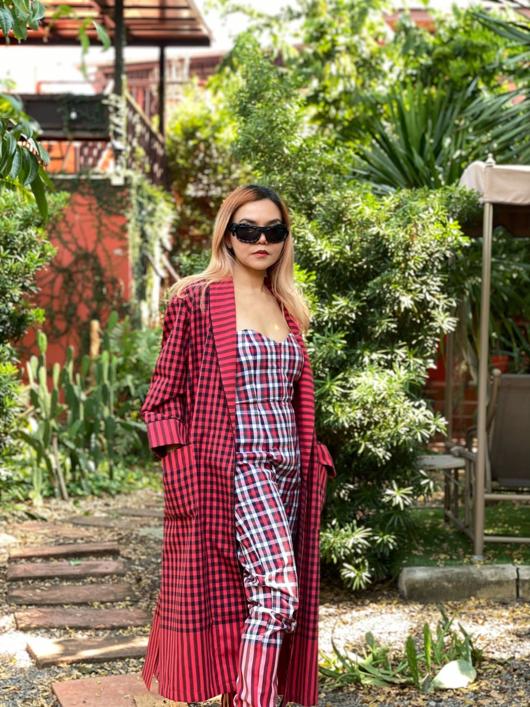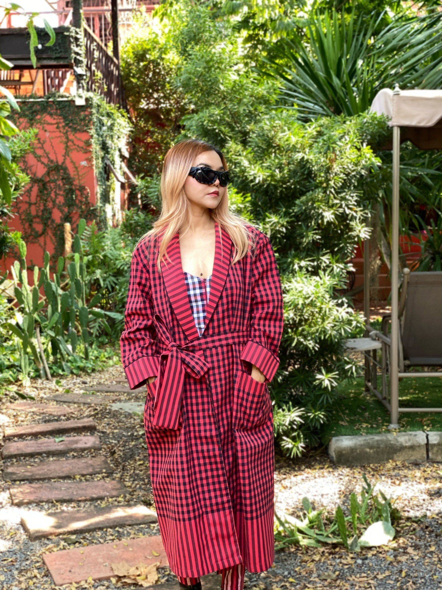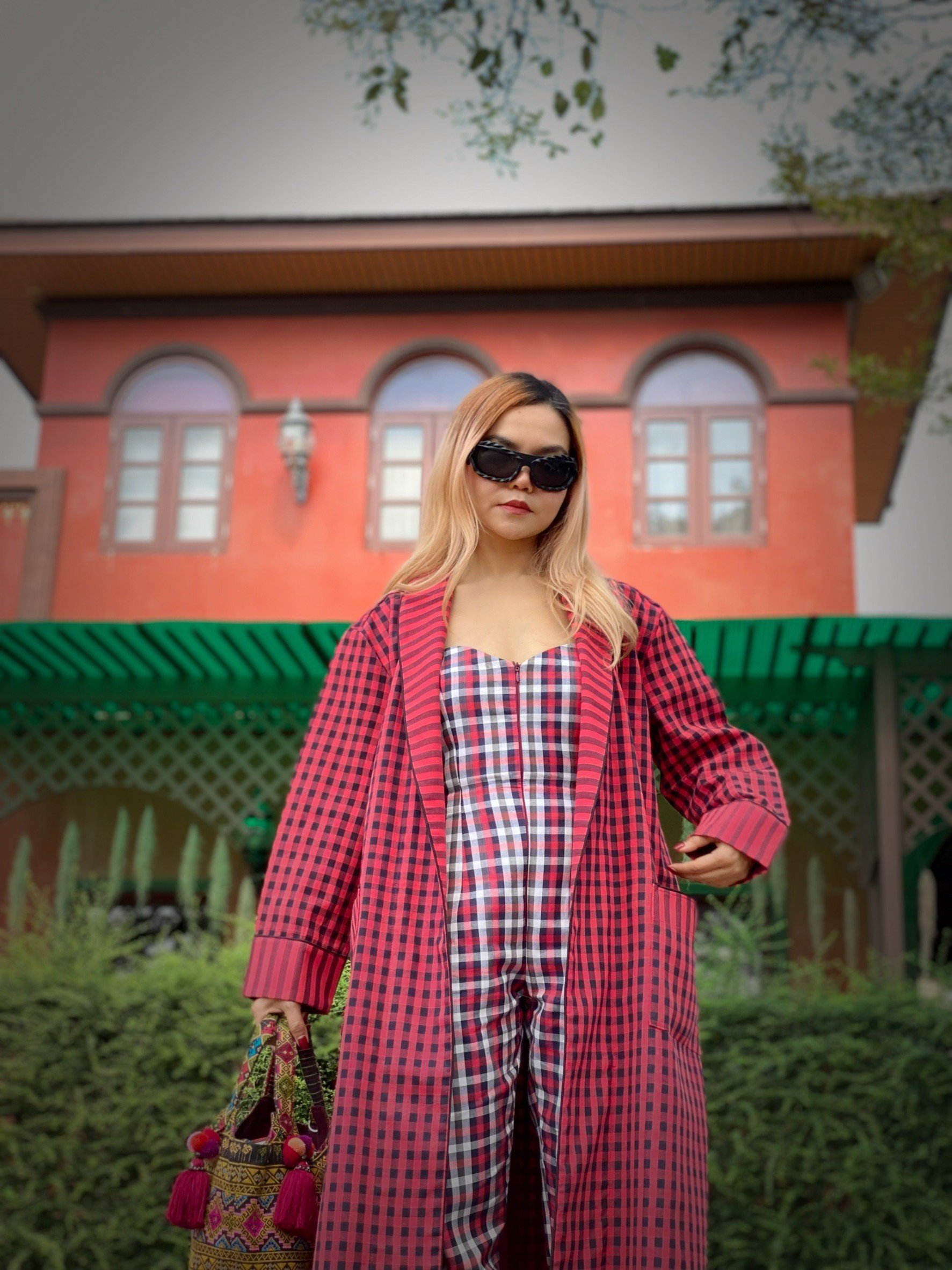 Khaomar Kubua Bathrobe Coat x Strapless Jumpsuit
