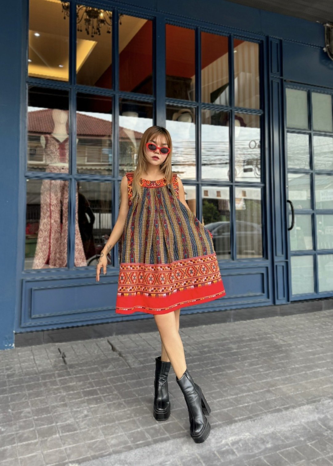 Mini Dress จากผ้าไทลื้อ x ผ้าฝ้ายทอมือ ย้อมสีธรรมชาติผลิตภัณฑ์ OTOP ของดี อําเภอเกษตรวิสัย จังหวัดร้อยเอ็ด
