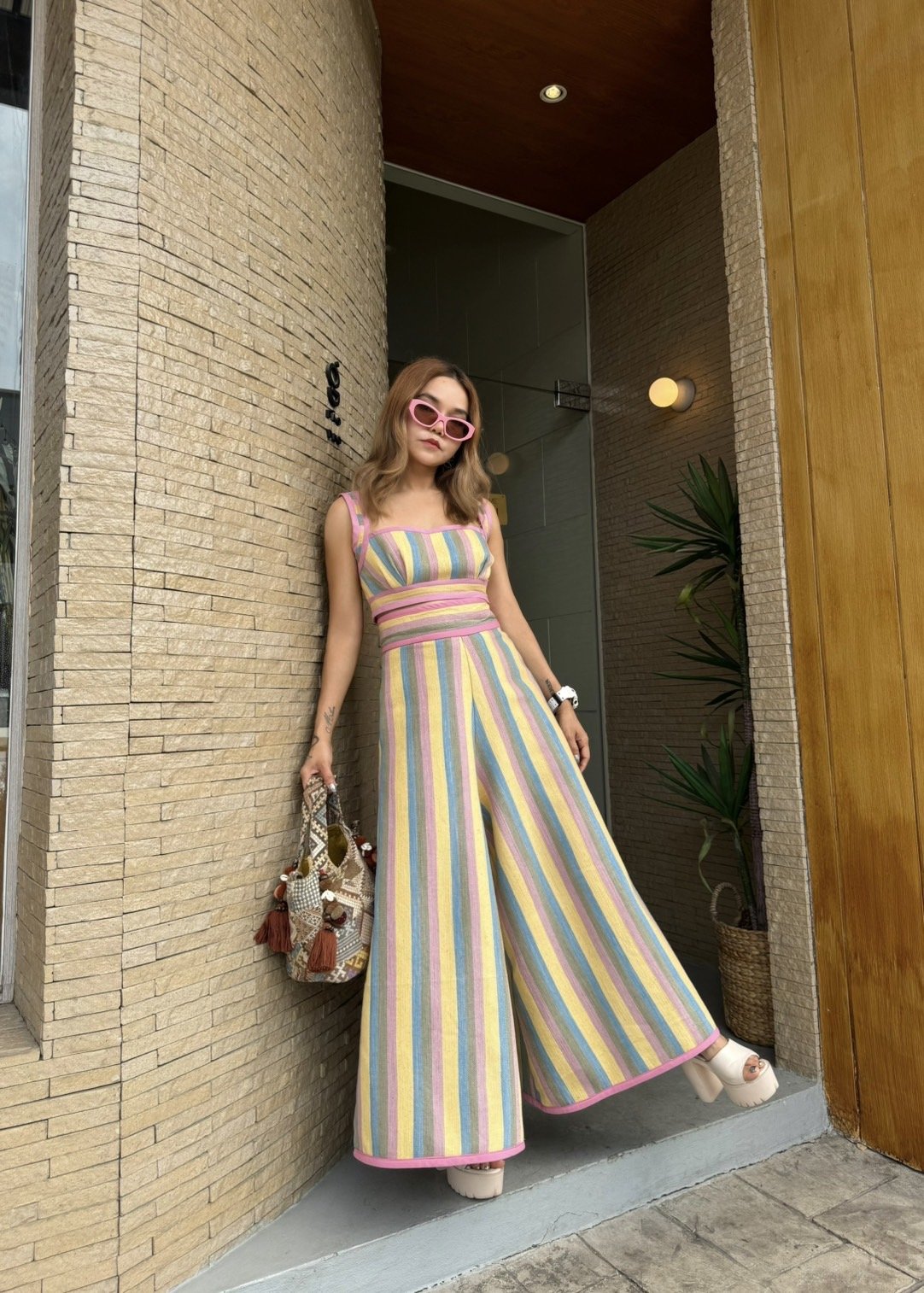 Roi-Et Pastel Cotton Crop Top x Wide Leg Pants