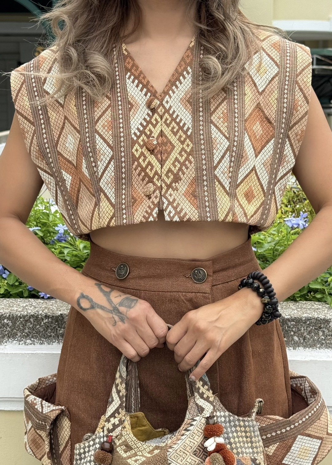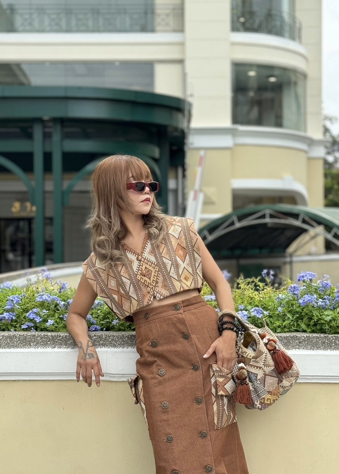 สื้อยืดคอจับจีบเฉียง มิกซ์แอนด์แมทช์ กับกางเกงจากผ้ามัดหมี่ ของดี จ.ลพบุรี