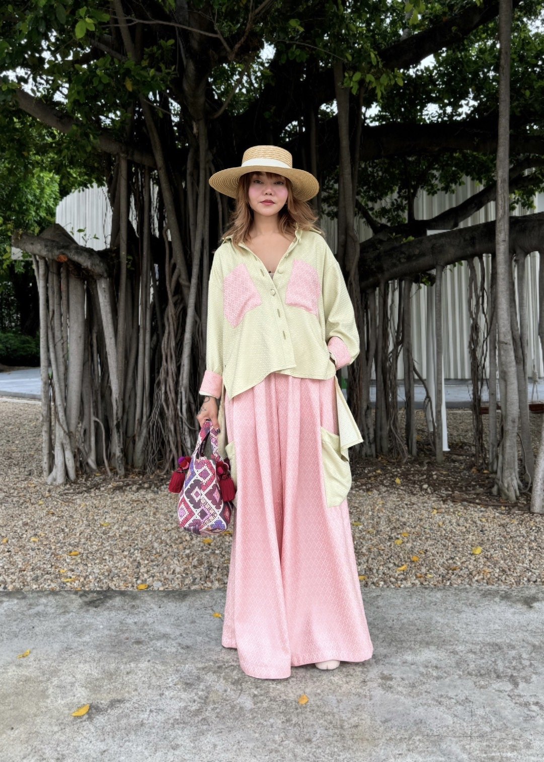 Pastel Korat Silk Shirt x Wide Leg Pants