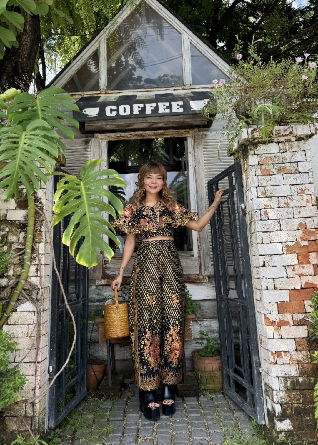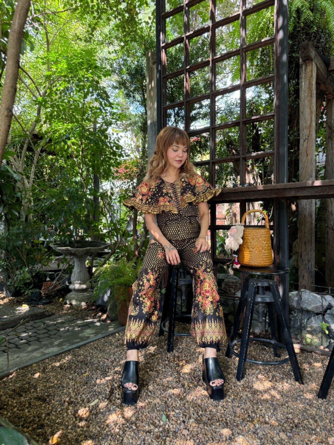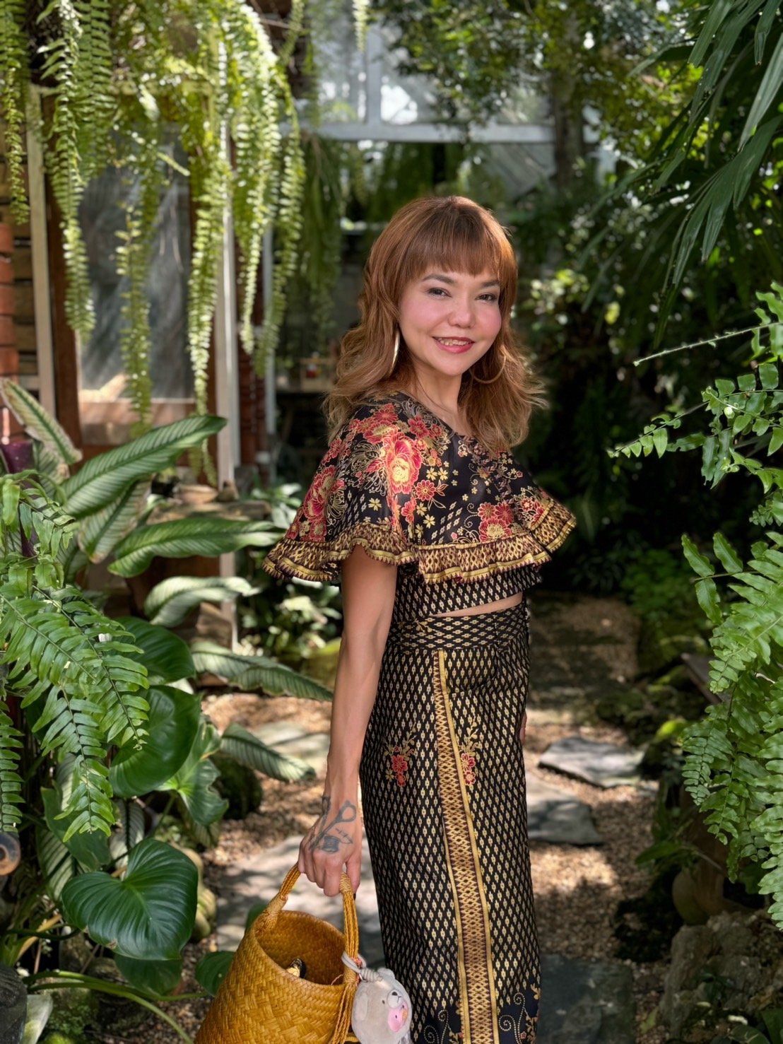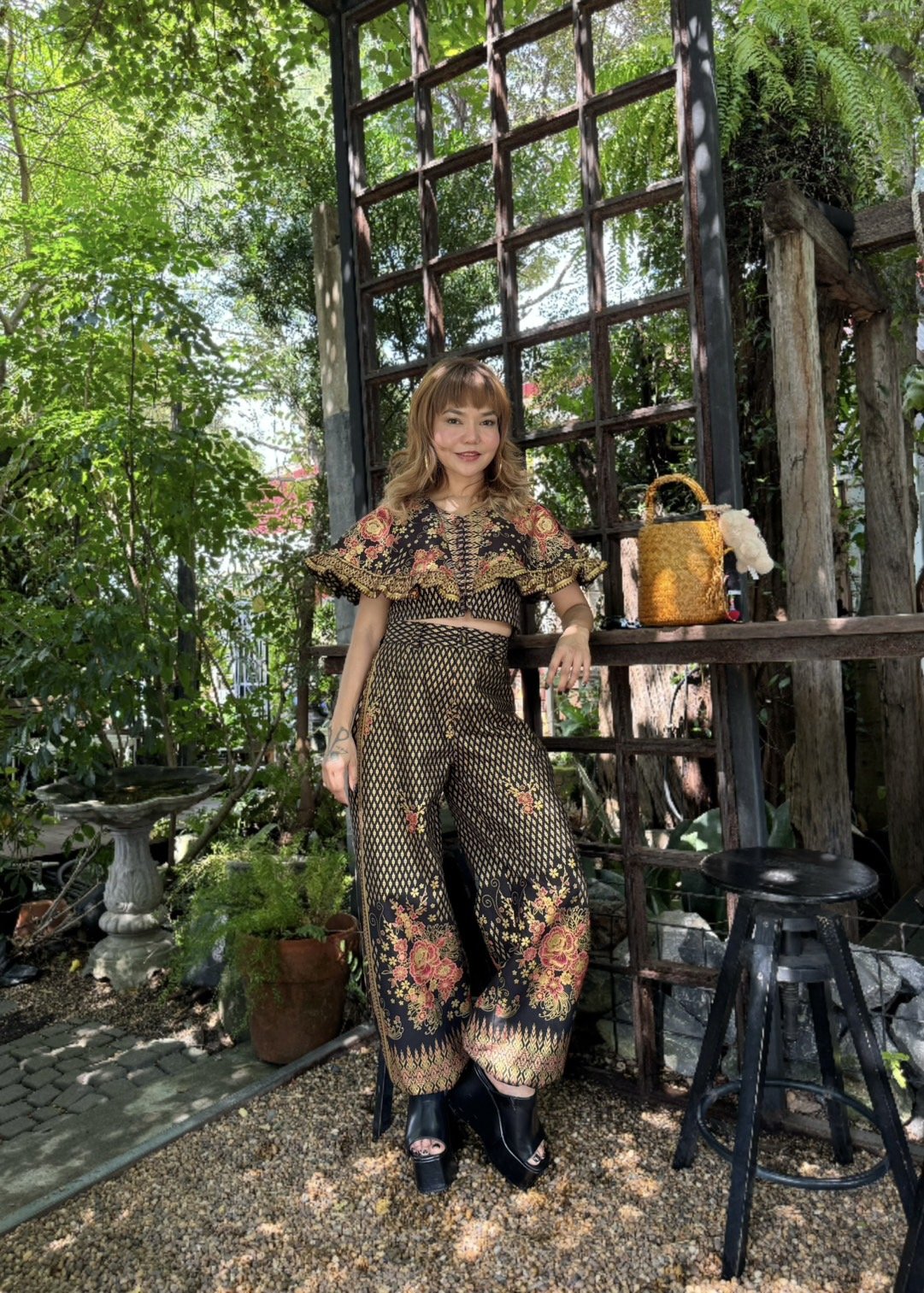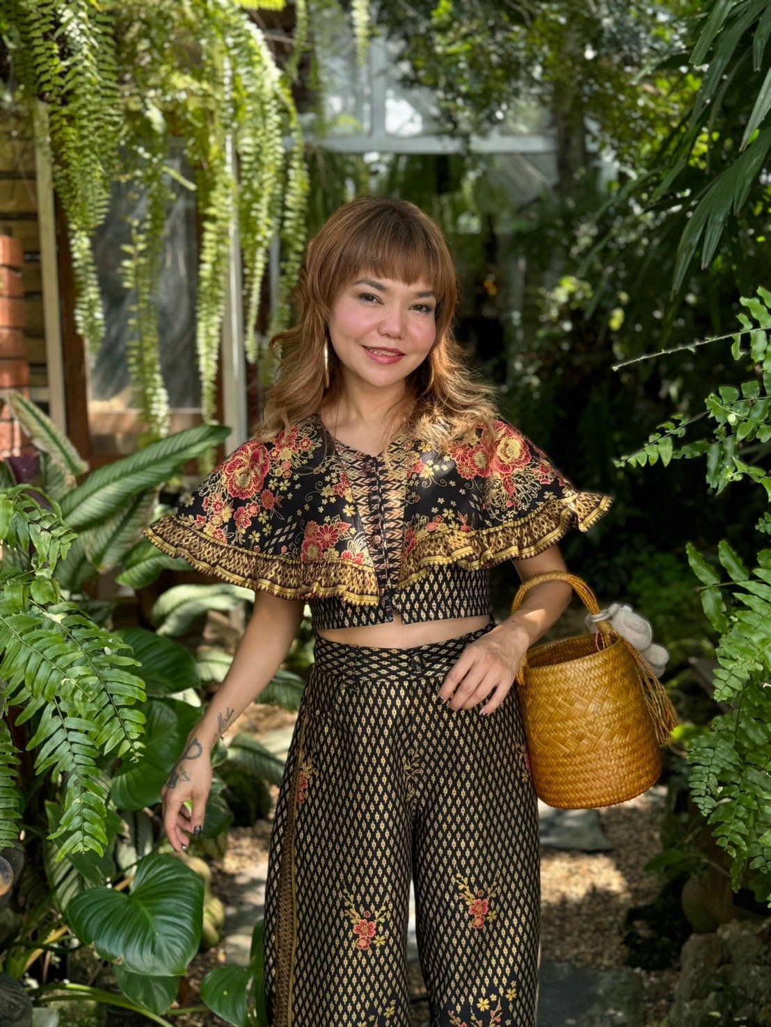 สื้อยืดคอจับจีบเฉียง มิกซ์แอนด์แมทช์ กับกางเกงจากผ้ามัดหมี่ ของดี จ.ลพบุรี